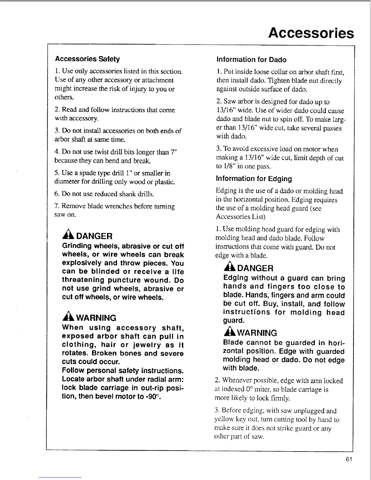molding head or dado. Do not edge