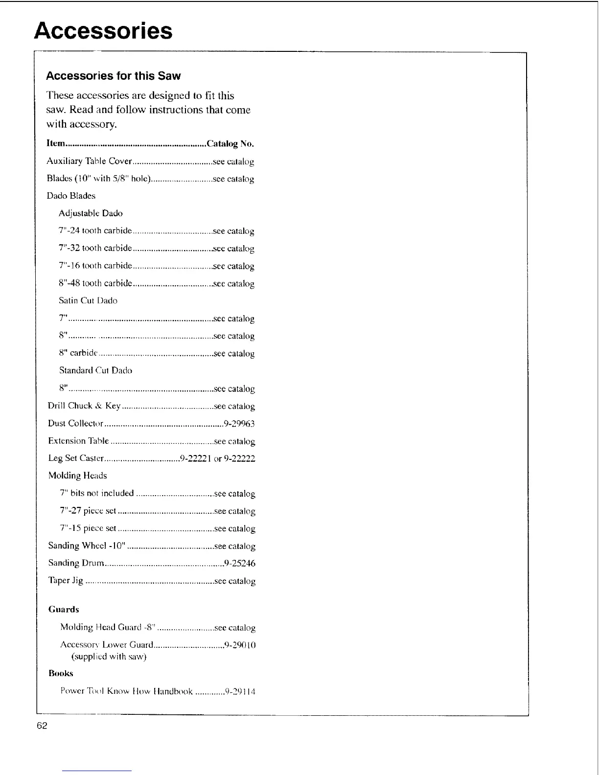 Blades (t0" with 5/8" hole) ........................... see catalog
