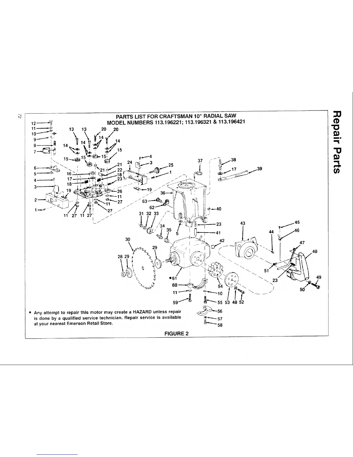 PARTS LIST FOR CRAFTSMAN 10" RADIAL SAW