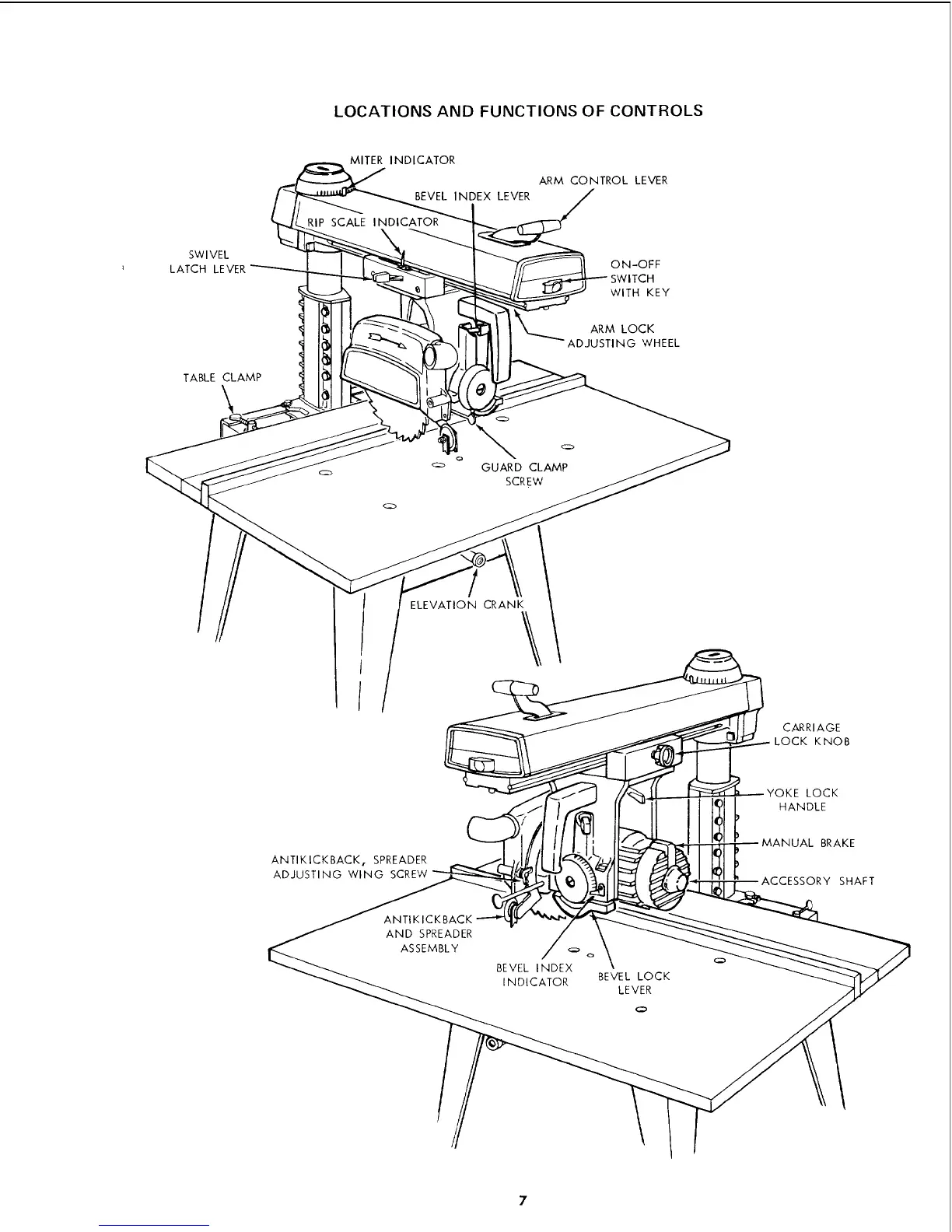 LOCATIONS AND FUNCTIONS OF CONTROLS