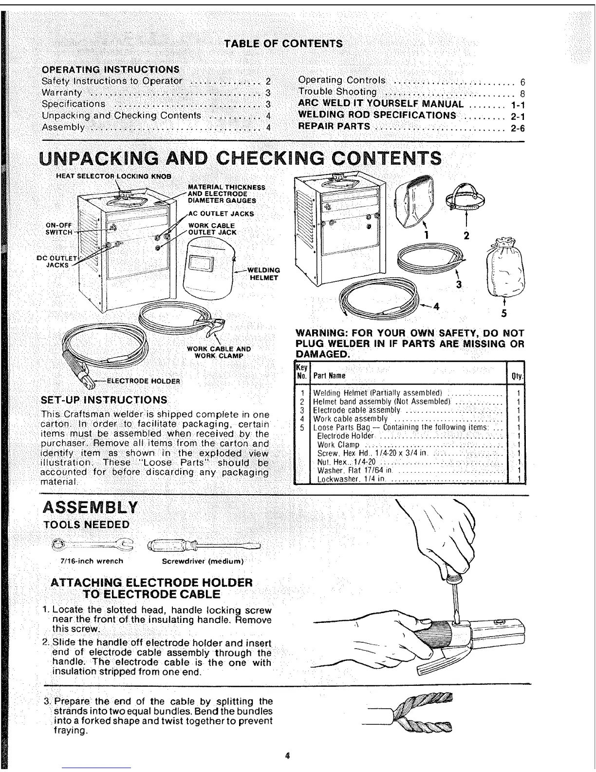 PLUG WELDER IN IF PARTS ARE MISSING OR