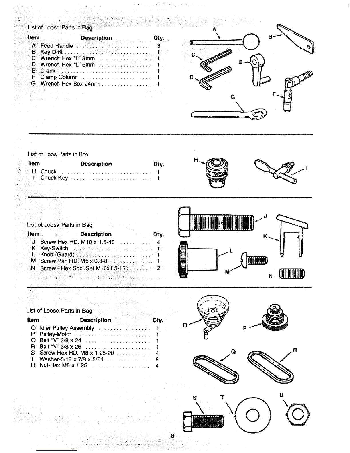 List of Loose Parts in Bag