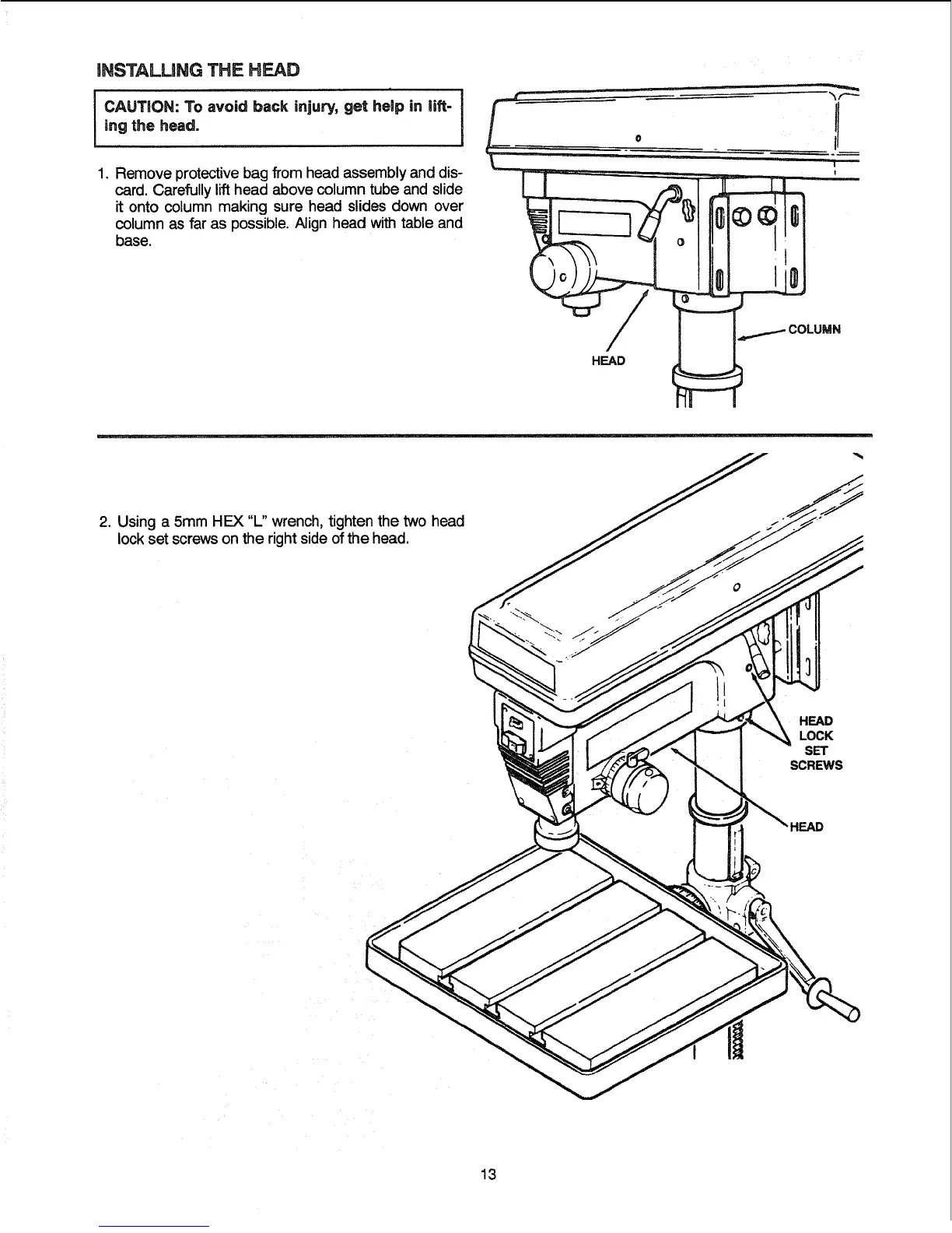 card. Carefully lift head above column tube and slide