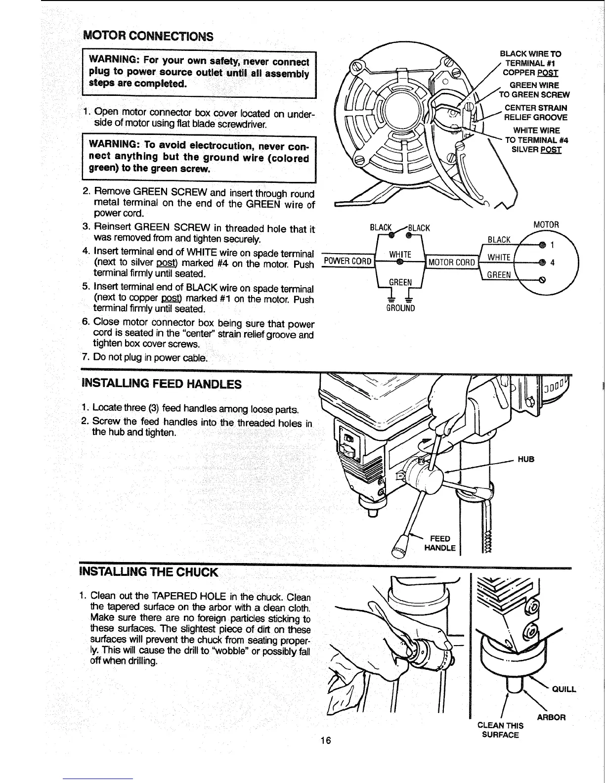 1. Clean out the TAPERED HOLE in the chuck, Clean