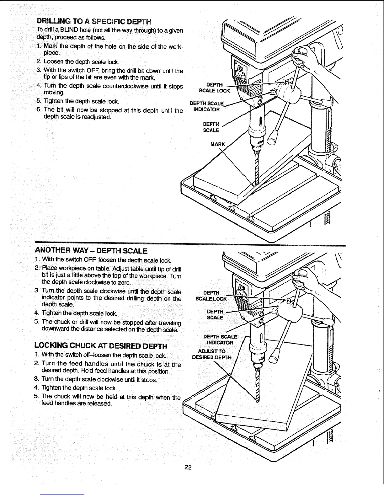 1. Wdh the switchOFF, loosenthe depthscale lock.