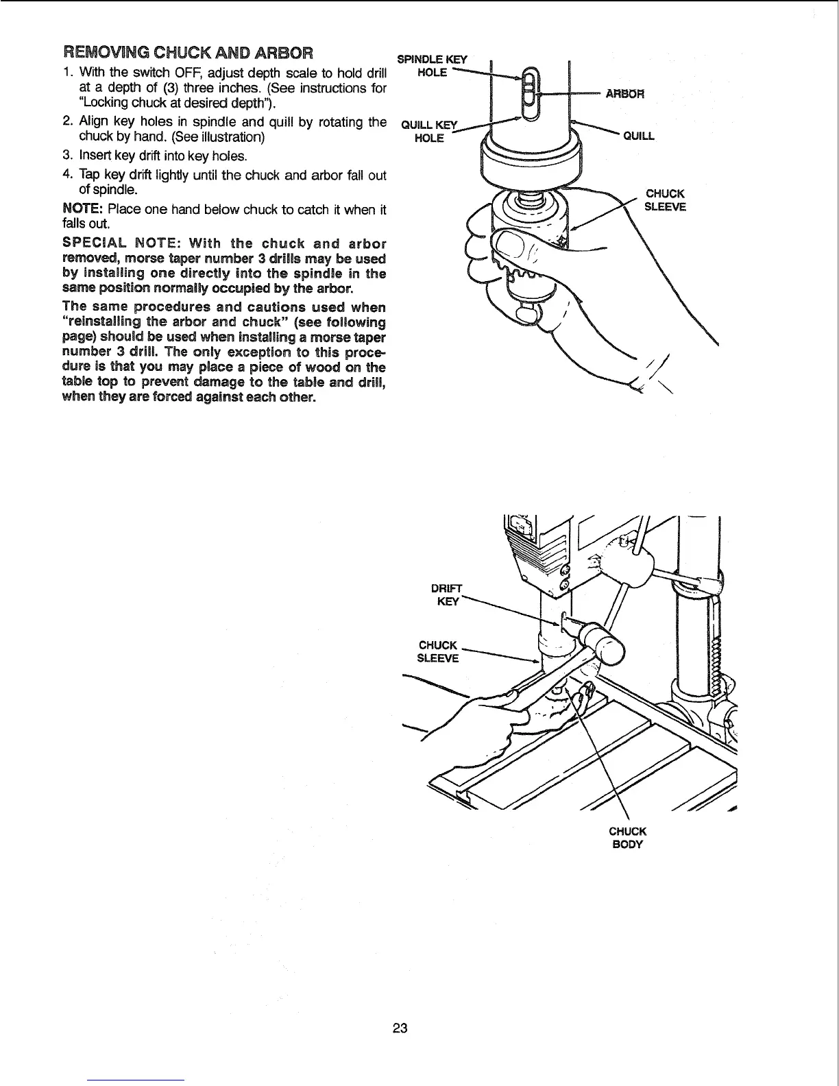 removed, morse taper number 3 drills may be used
