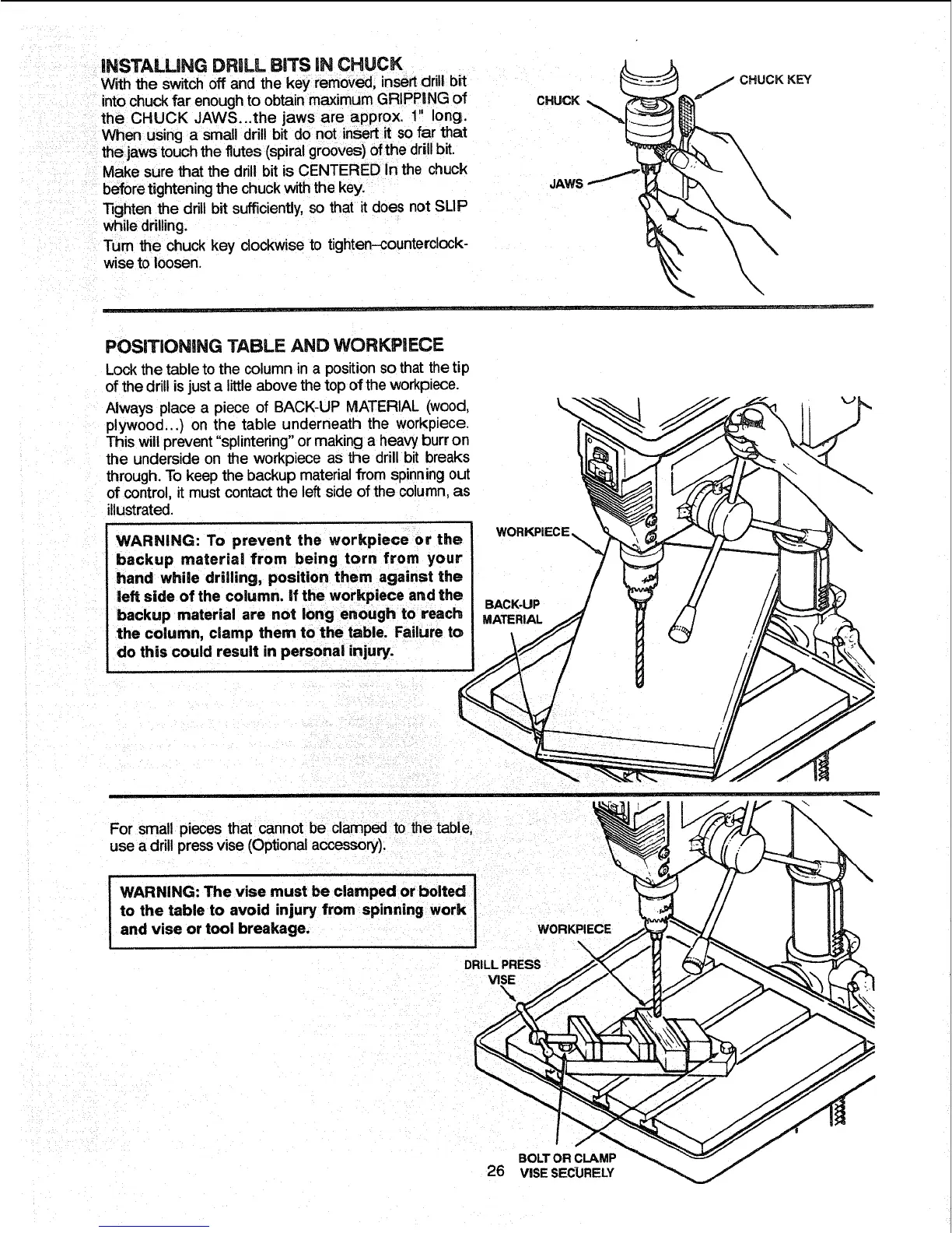 I WARNING: The vise must be clamped or bolted
