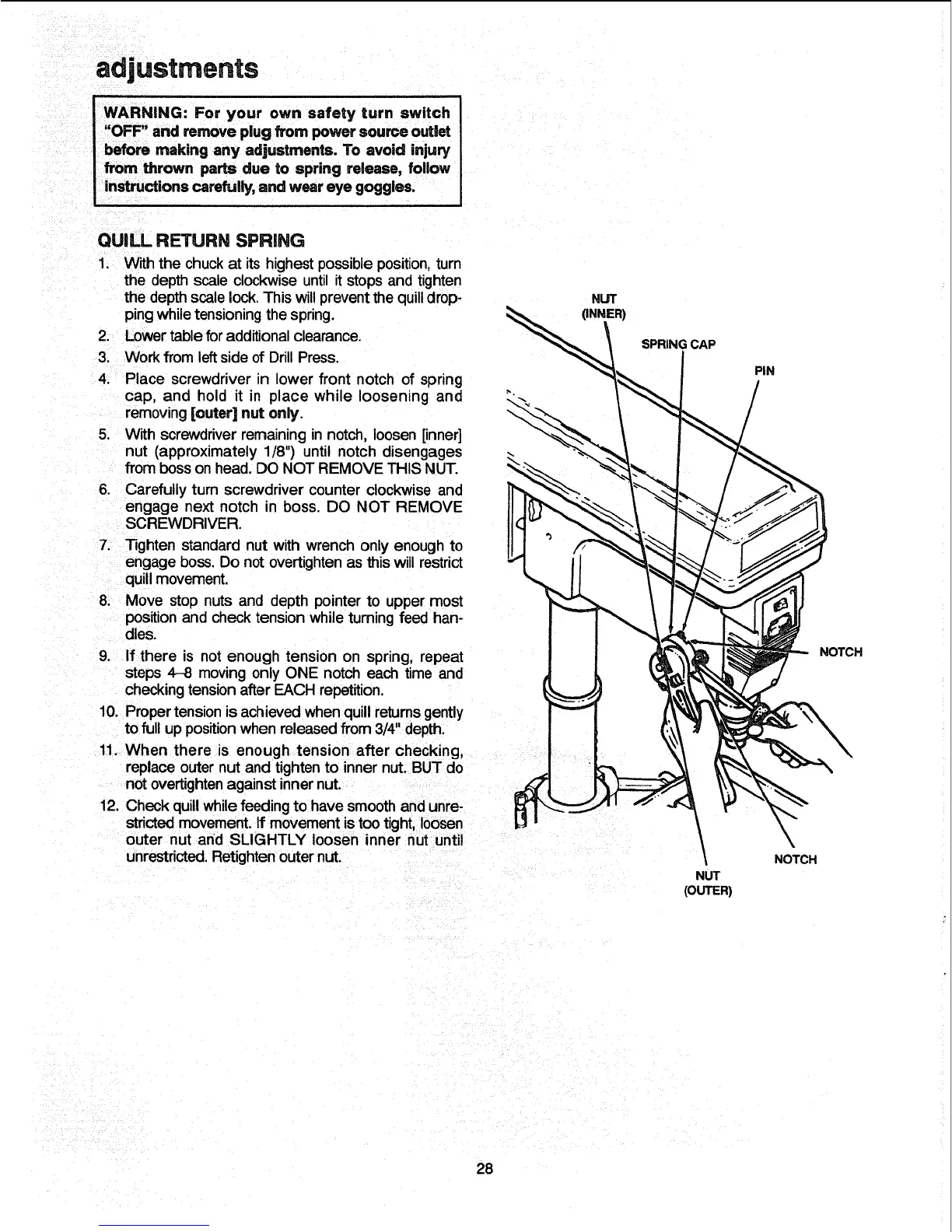 before making any adjustments. To avoid injury