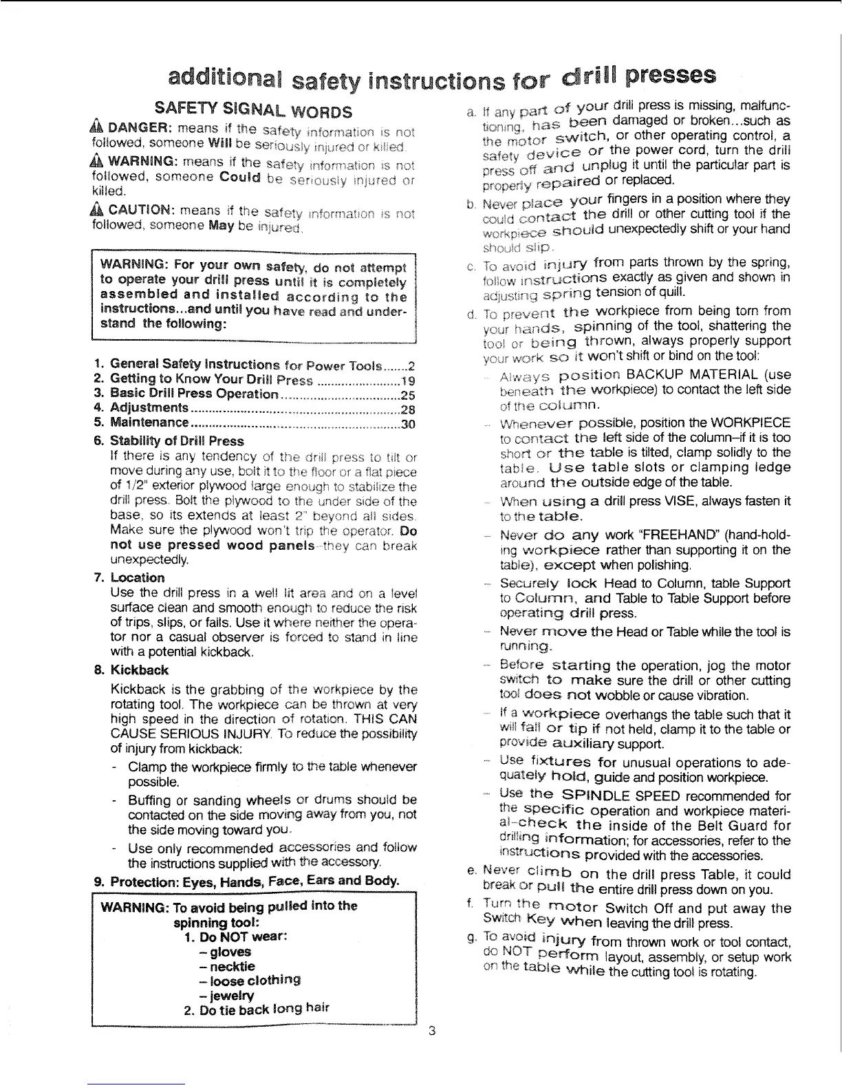 SAFETY SIGNAL WORDS a, _f any pa_ of your driit press is missing, maifunc_