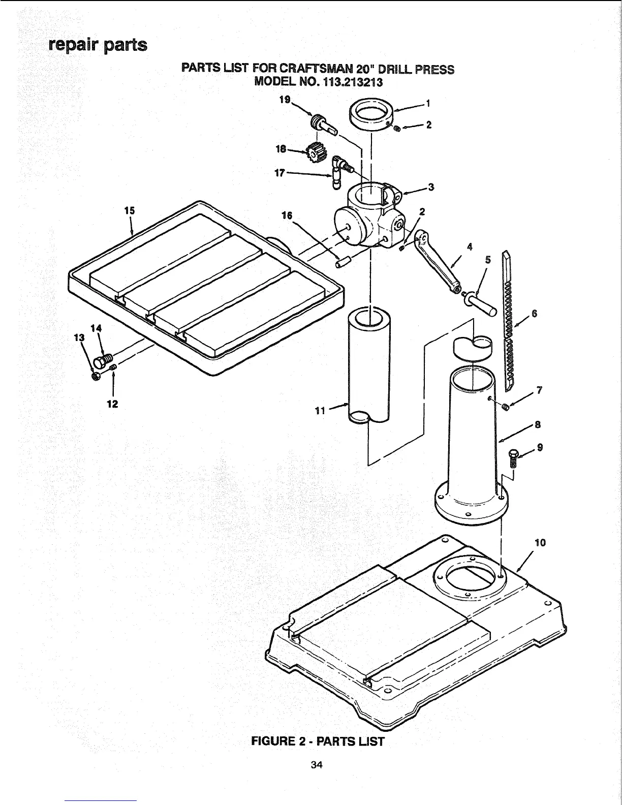 PARTS LiST FOR CRAFTSMAN 20" DRILL PRESS