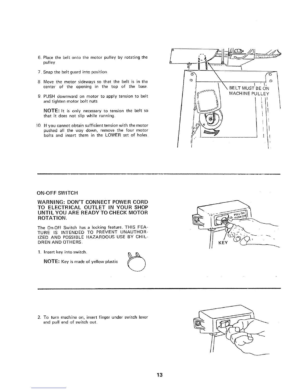 9 PUSH downward on motor to apply tension to belt