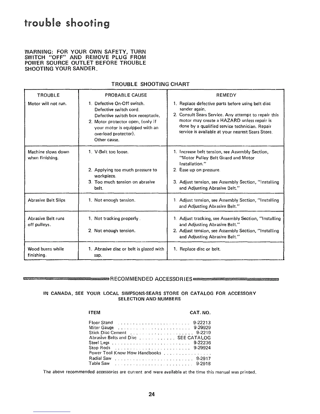IN CANADA, SEE YOUR LOCAL SIMPSONS-SEARS STORE OR CATALOG FOR ACCESSORY