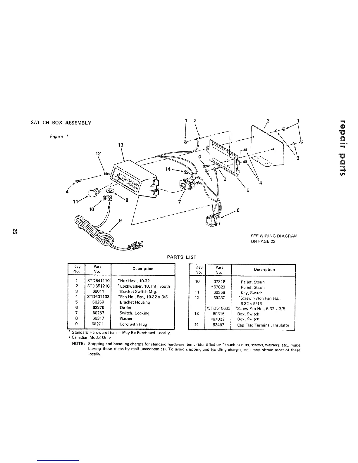 NOTE: Shipping and handling charges for standard hardware items (identified by *) such as nuts. screws, washers, etc., make