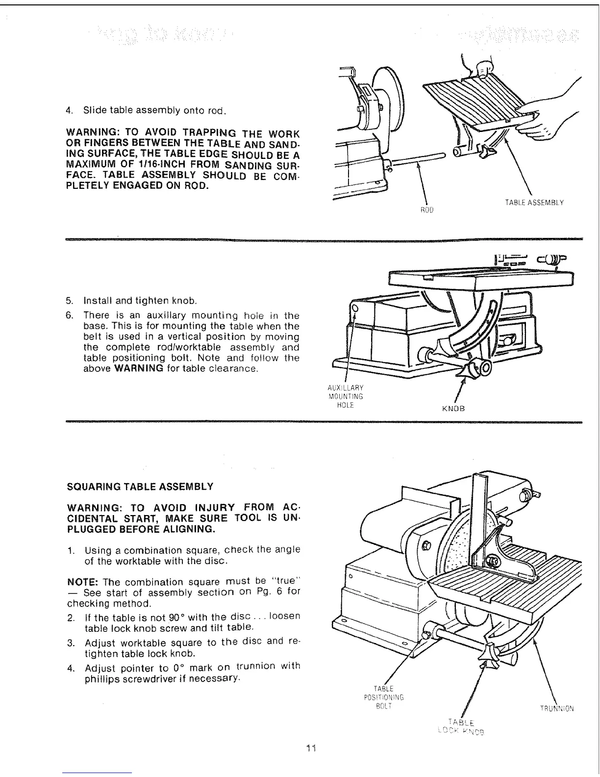 2. tf the table is not 90 ° with the disc,., loosen