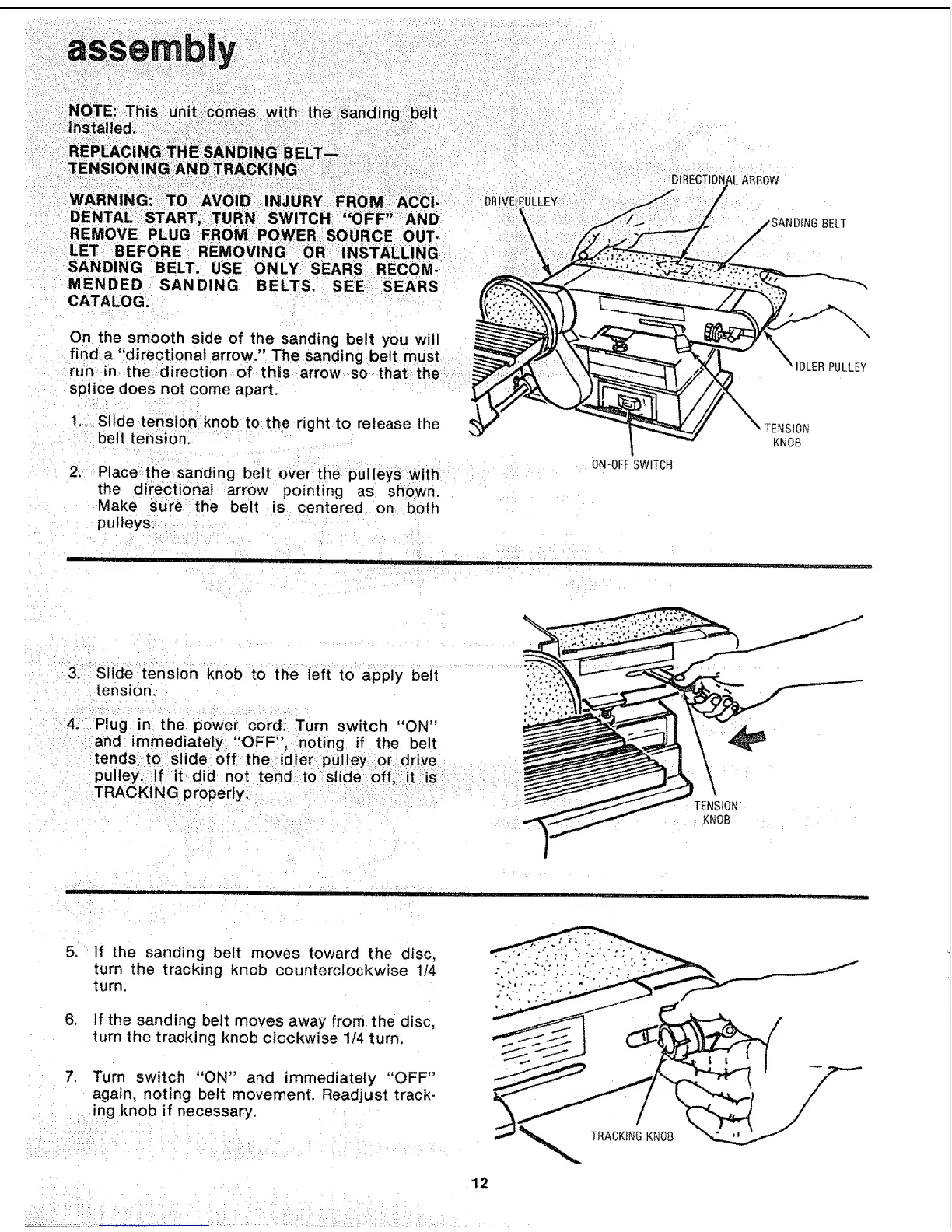 SANDING BELT. USE ONLY SEARS RECOM-