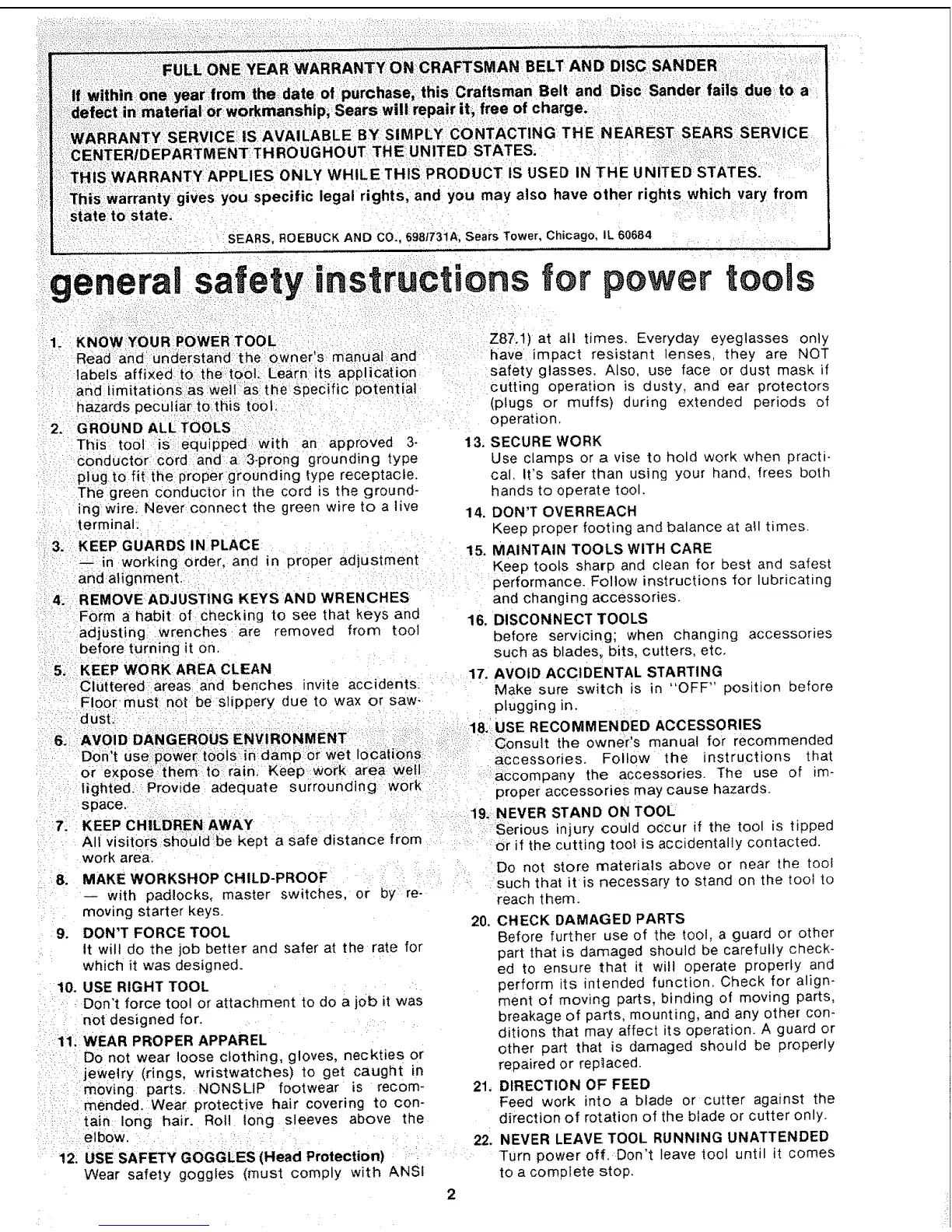 enerai safety:ansi uctions for power tools
