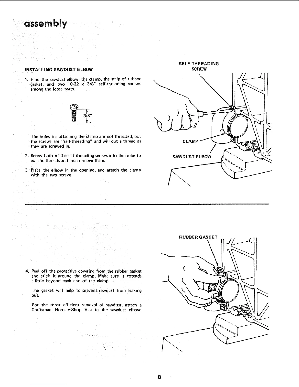 1. Find the sawdust elbow, the clamp, the strip of rubber