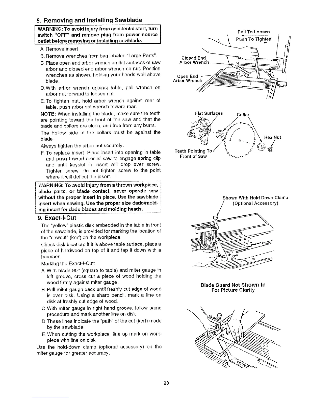 8. Removing and Installing Sawblade