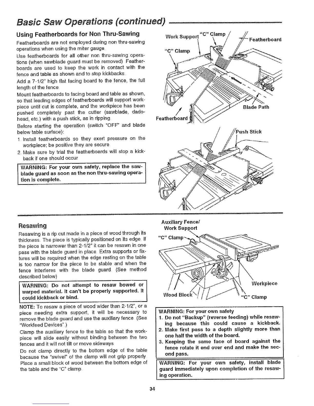 NOTE: To resaw a piece of wood wider than 2-1/2", or a