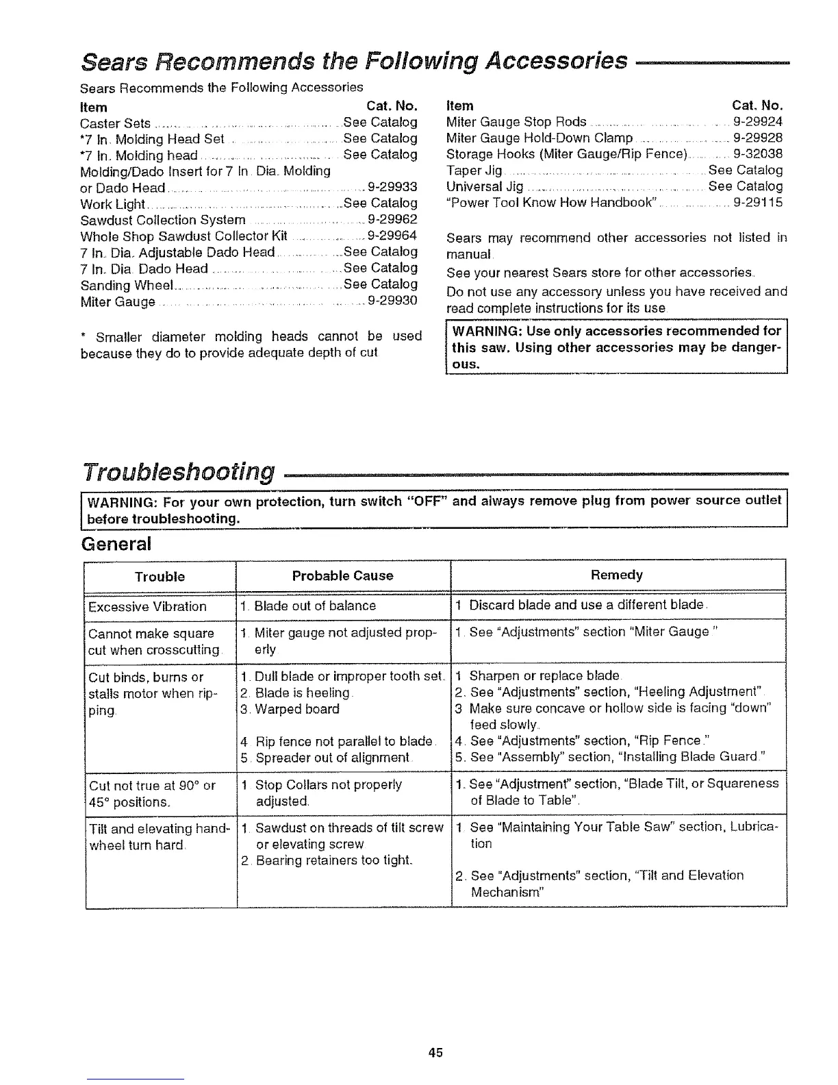 1 See "Maintaining Your Table Saw" section, Lubrica-