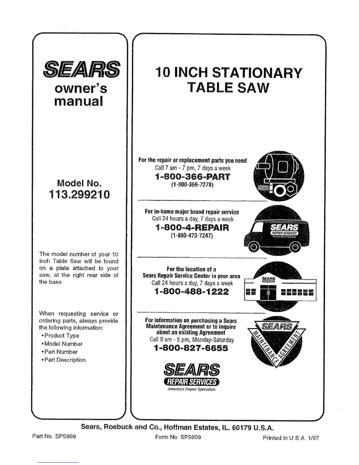 Part No SP5909 Form No SP5909 Printed in U S A 1/97