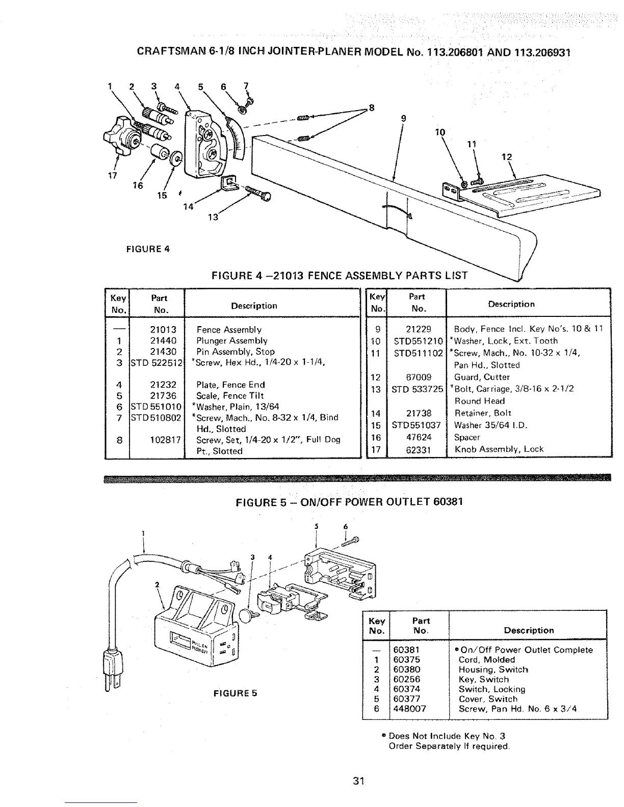 CRAFTSMAN 6-1/8 INCH JOINTER-PLANER MODEL No. 113.206801 AND 113.206931