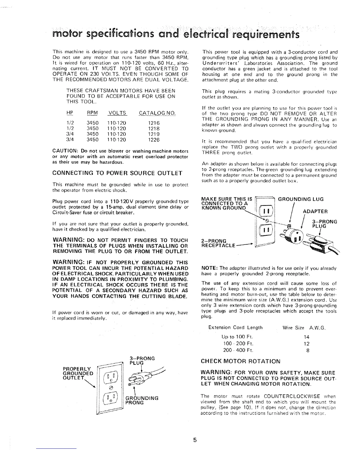 This machine is designed to use a 3450 RPM motor only.