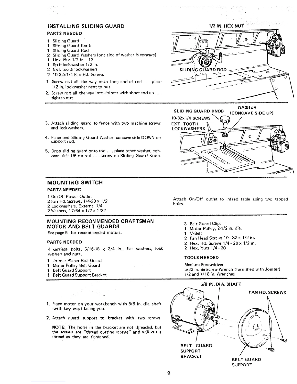 5/32 in, Setscrew Wrench (furnished with Jointer)