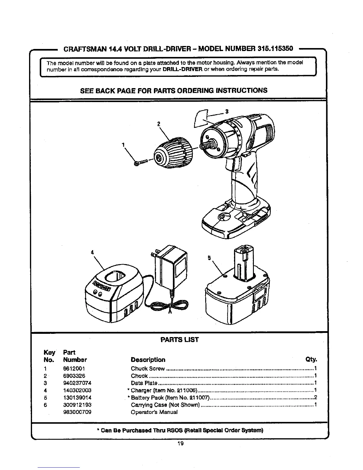 CRAFTSMAN 14A VOLT DRILL-DRIVER - MODEL NUMBER 315.1t5350