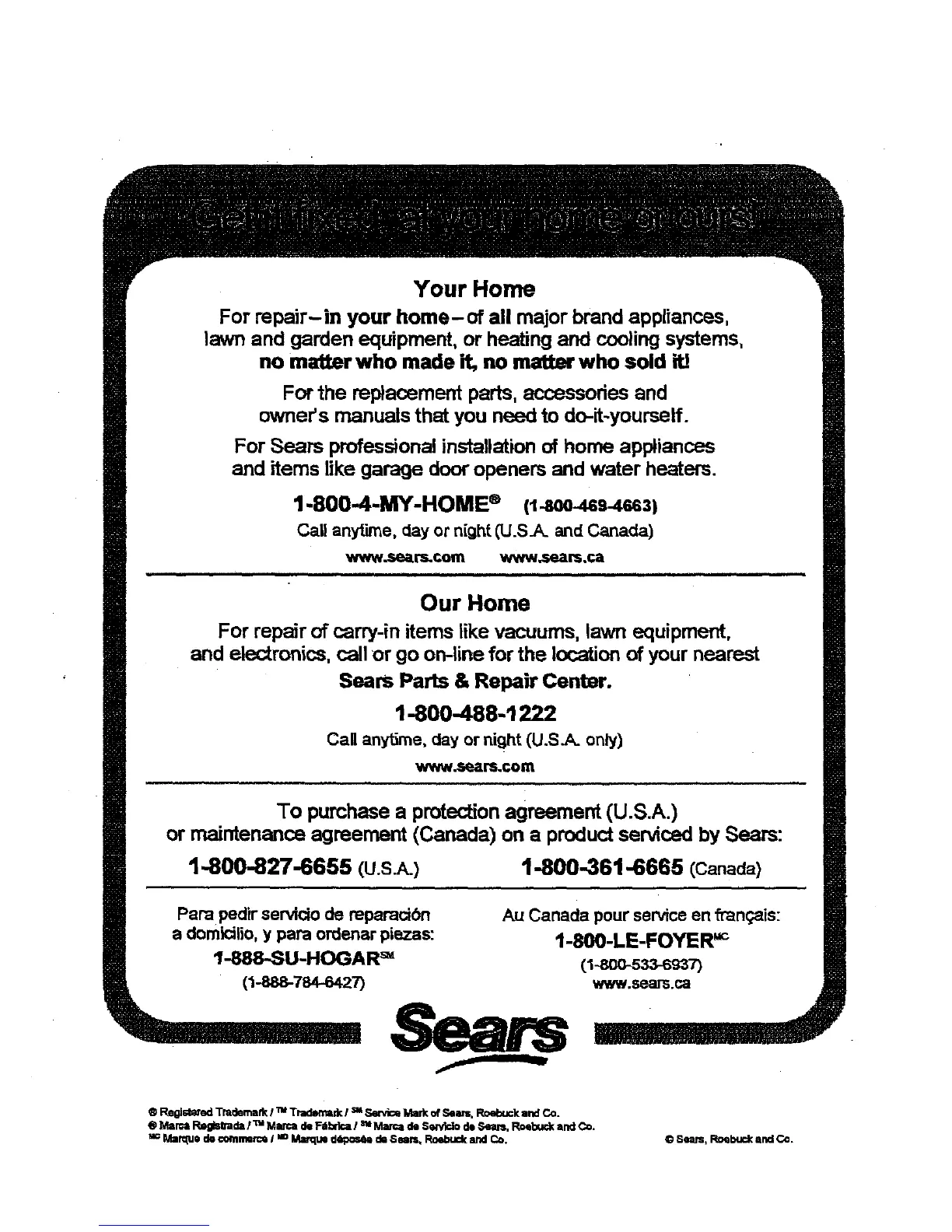 ormaintenanceagreement(Canada) on a productservicedby Sears: