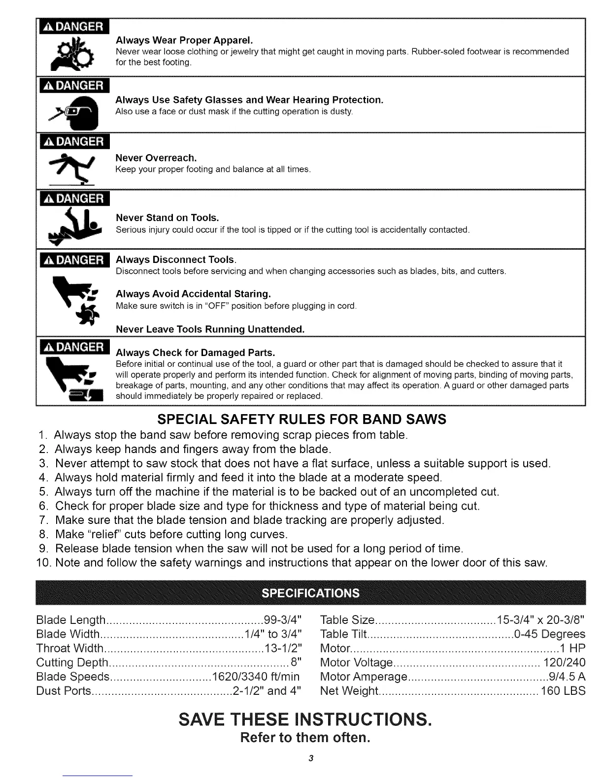 SPECIAL SAFETY RULES FOR BAND SAWS