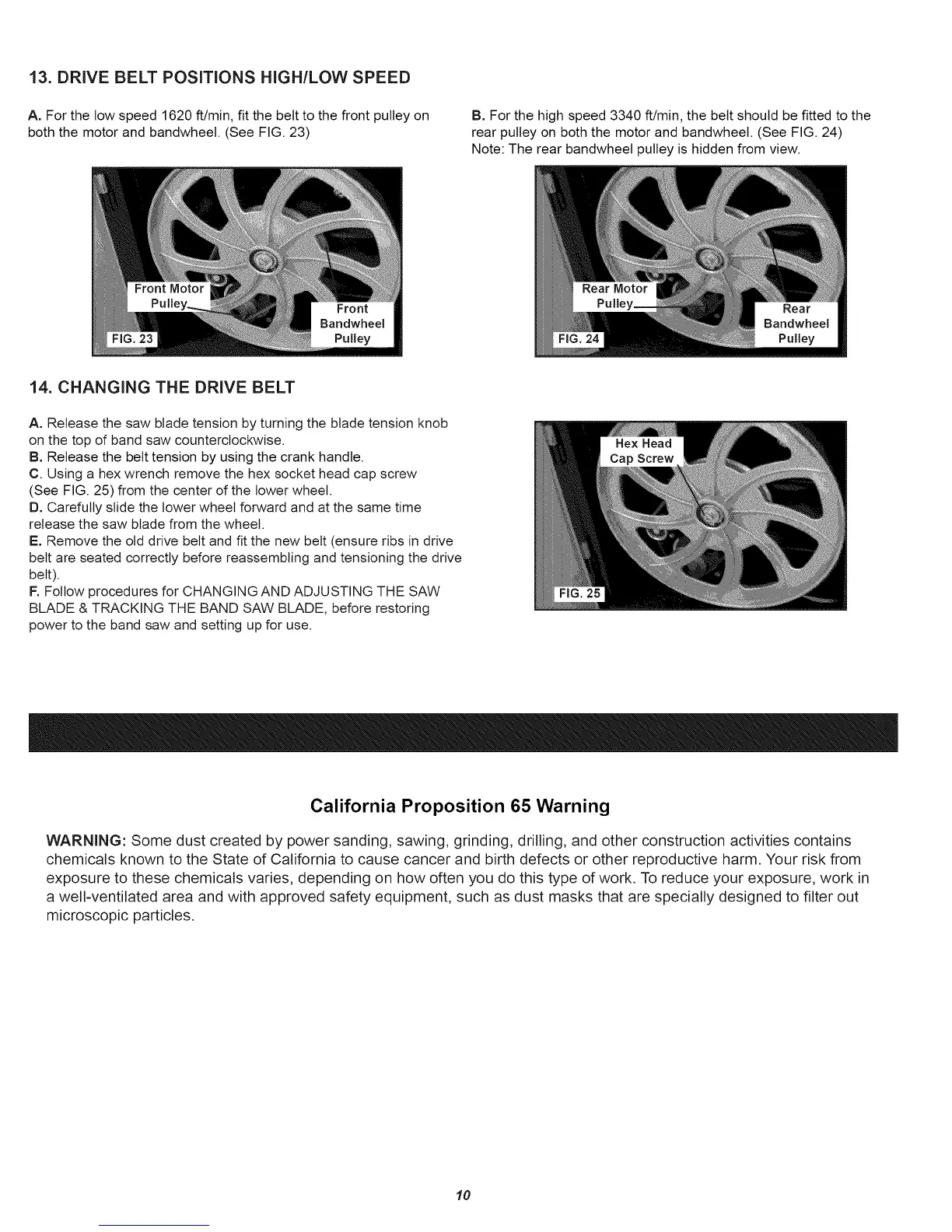 rear pulley on both the motor and bandwheel. (See FIG. 24)