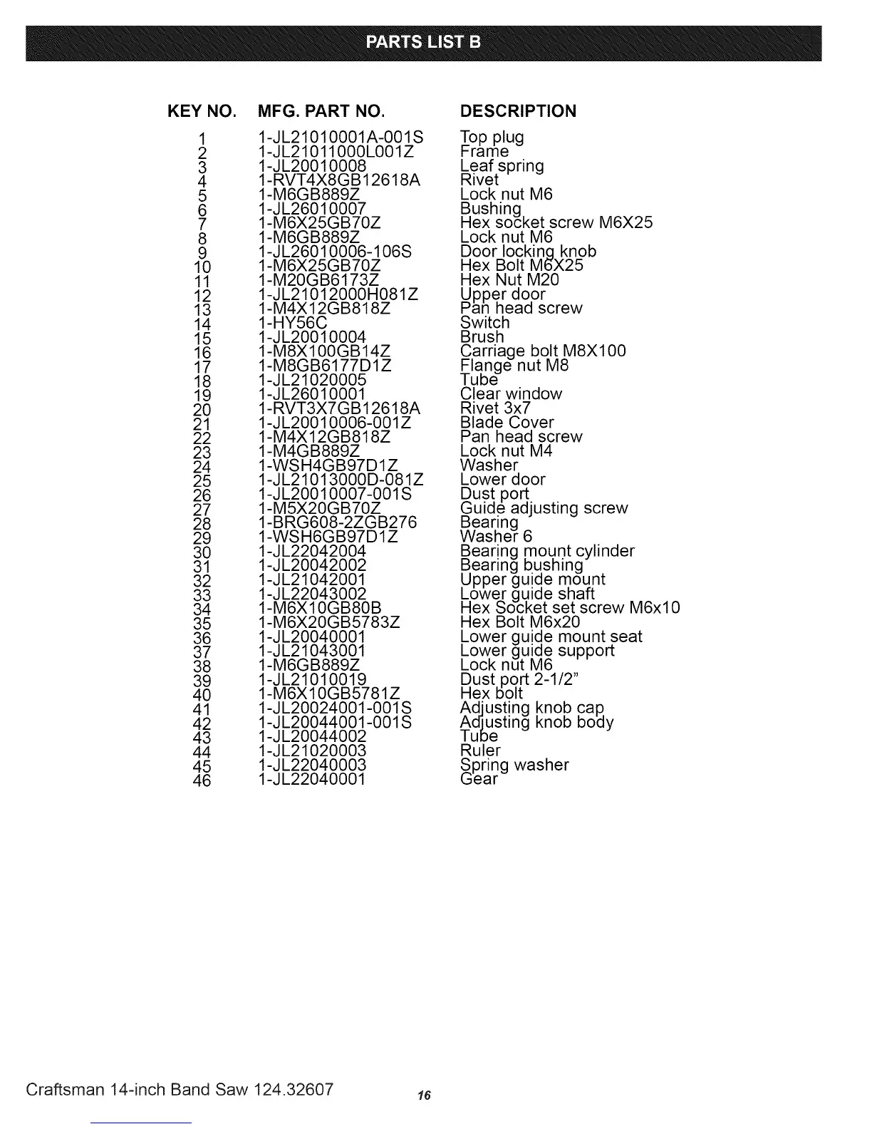 Craftsman 14-inch Band Saw 124.32607 16