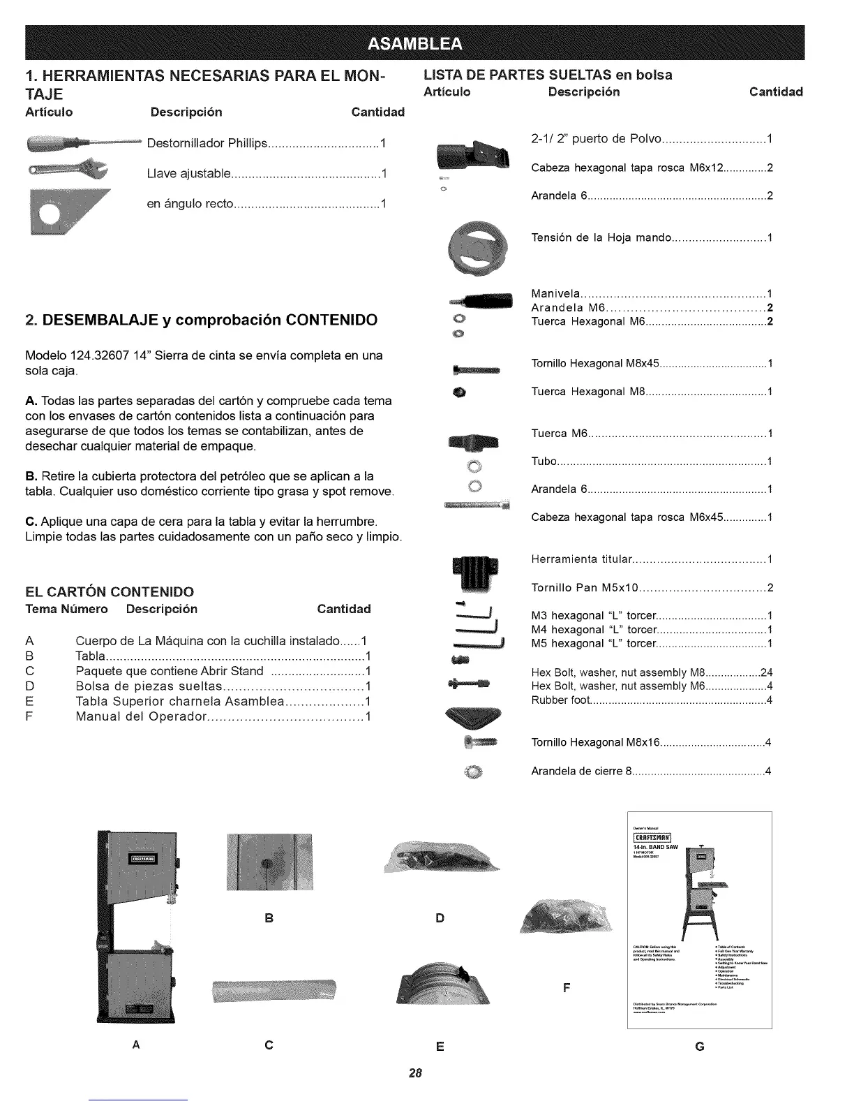 1. HERRAMIENTAS NECESARIAS PARA EL MON= LISTA DE PARTES SUELTAS en bolsa