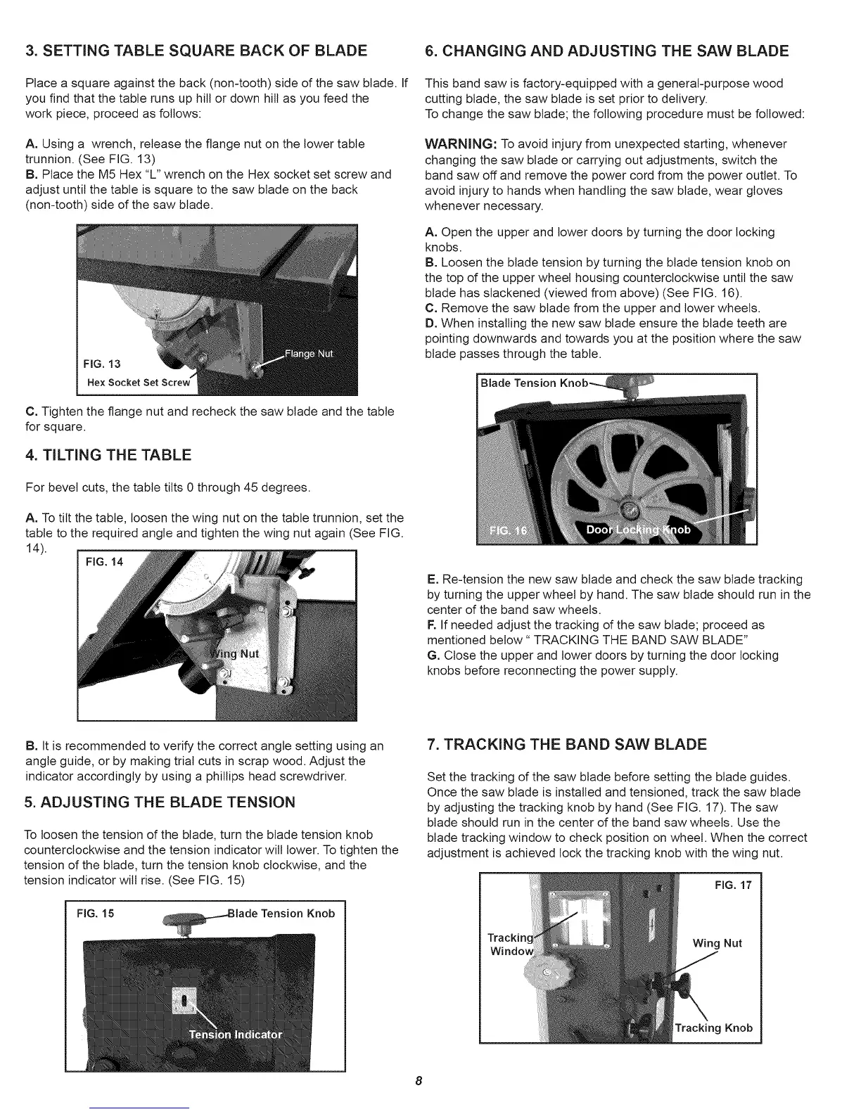 3. SETTING TABLE SQUARE BACK OF BLADE 6. CHANGING AND ADJUSTING THE SAW BLADE