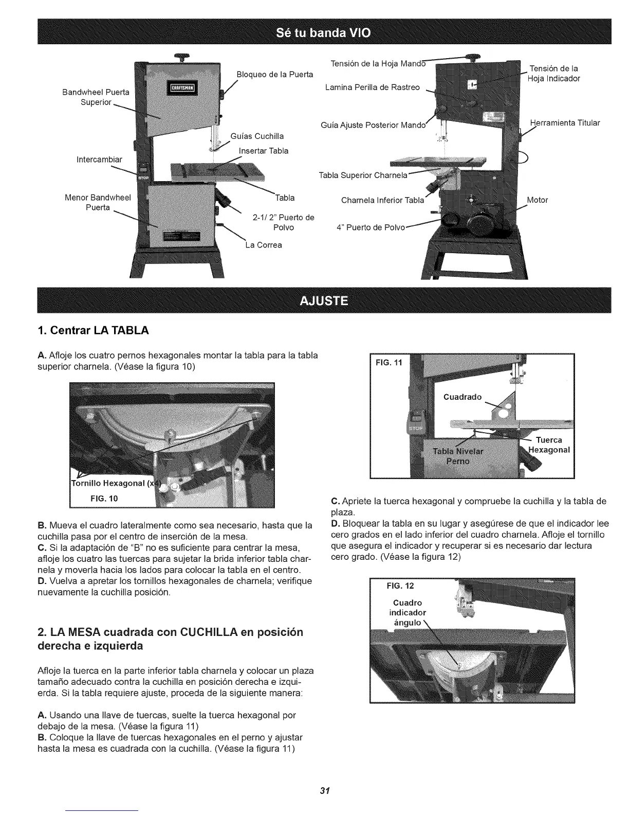 hasta la mesa es cuadrada con la cuchilla. (Vease la figura 11)