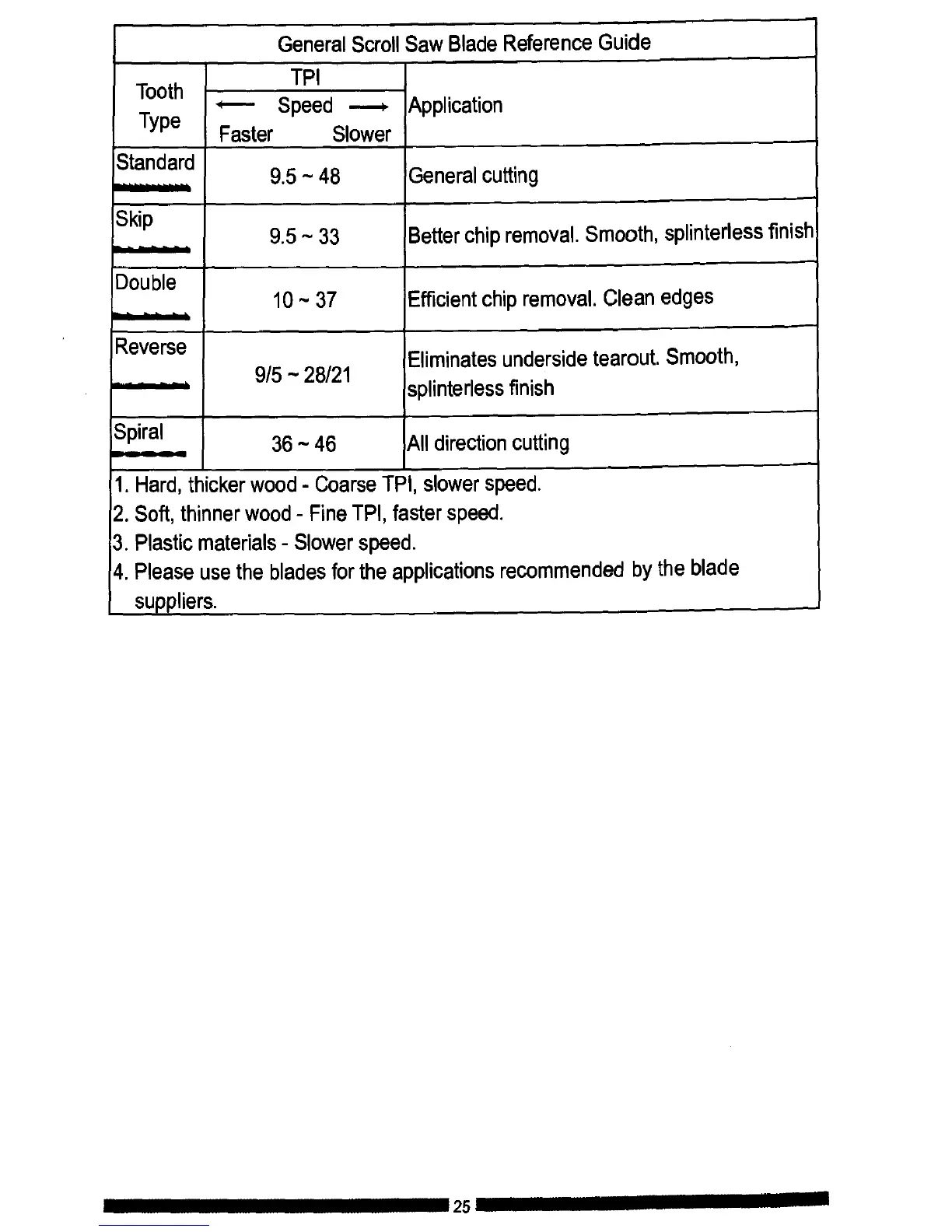 i. Hard, thicker wood - Coarse TPI, slower speed.