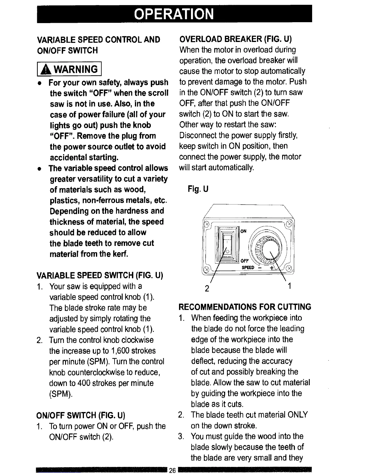 VARIABLE SPEED SWITCH (FIG. U)