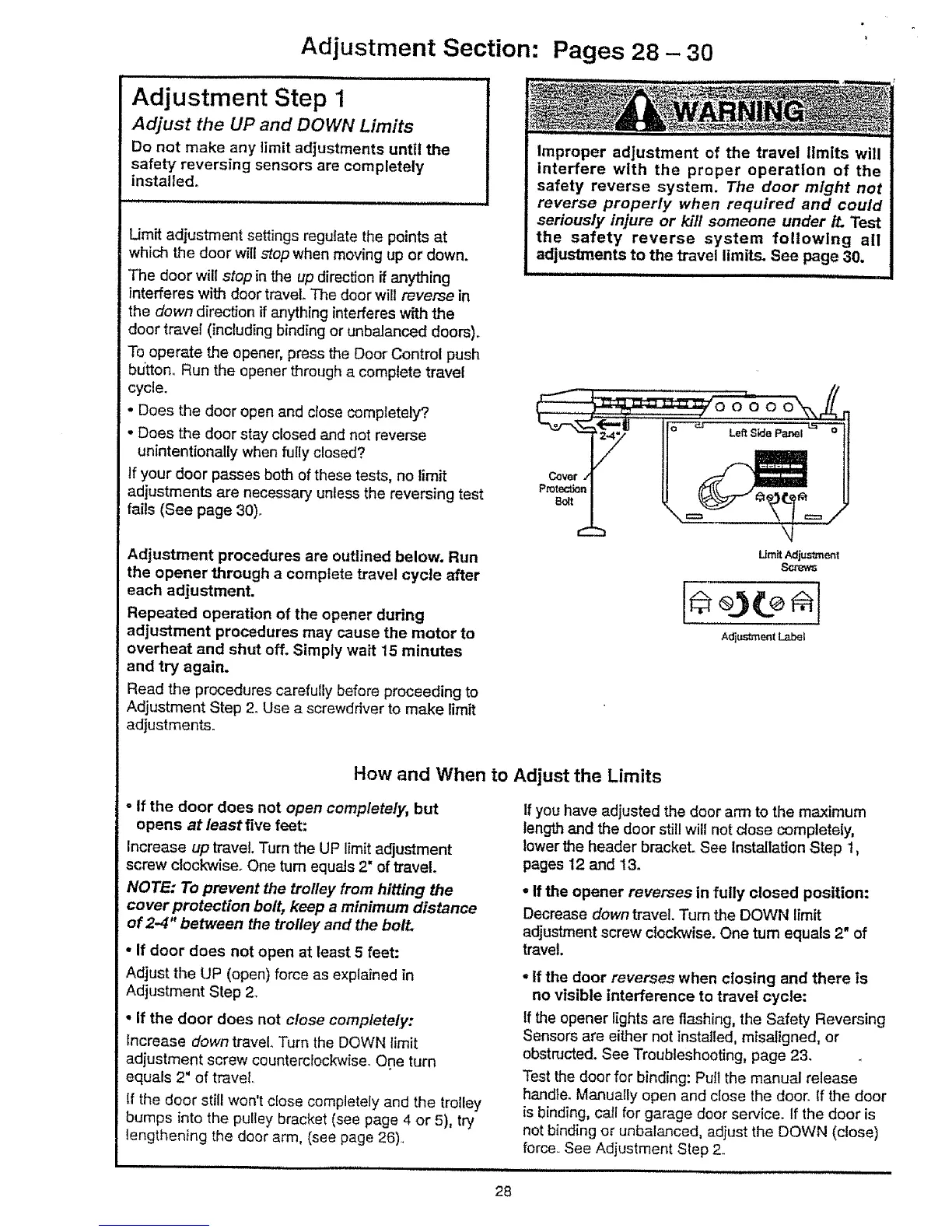 adjustments to the travel limits. See page 30.