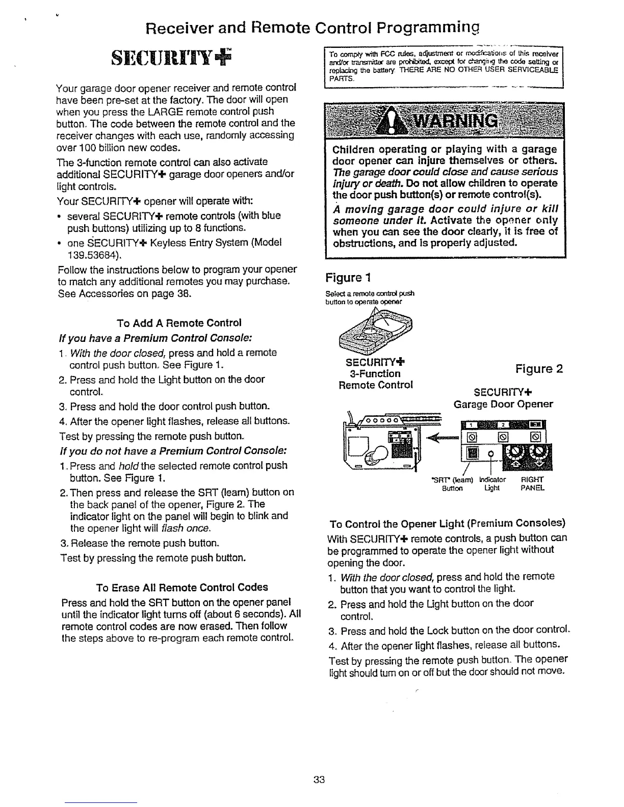 With SECURITY+ remote controls, a push bt_on can