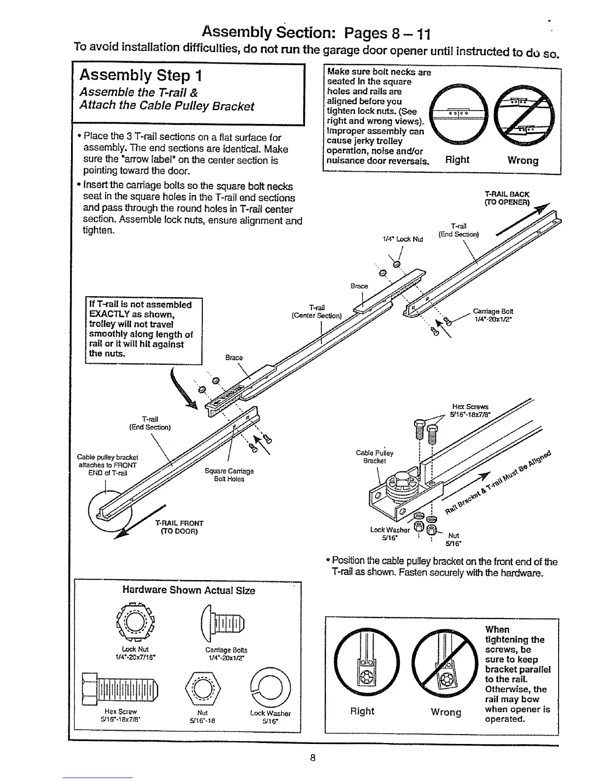 To avoid installation difficulties, do not run the garage door opener until instructed to do so.