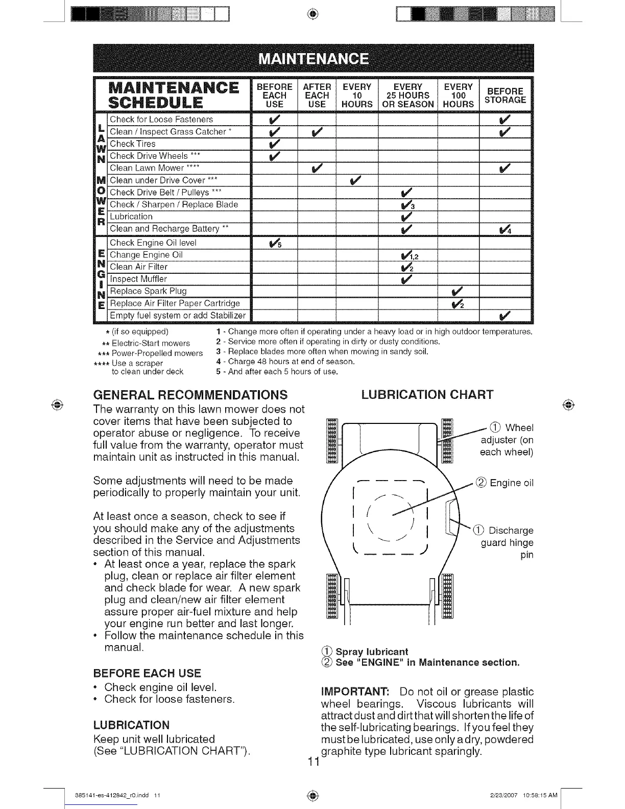 (See "LUBRICATION CHART").