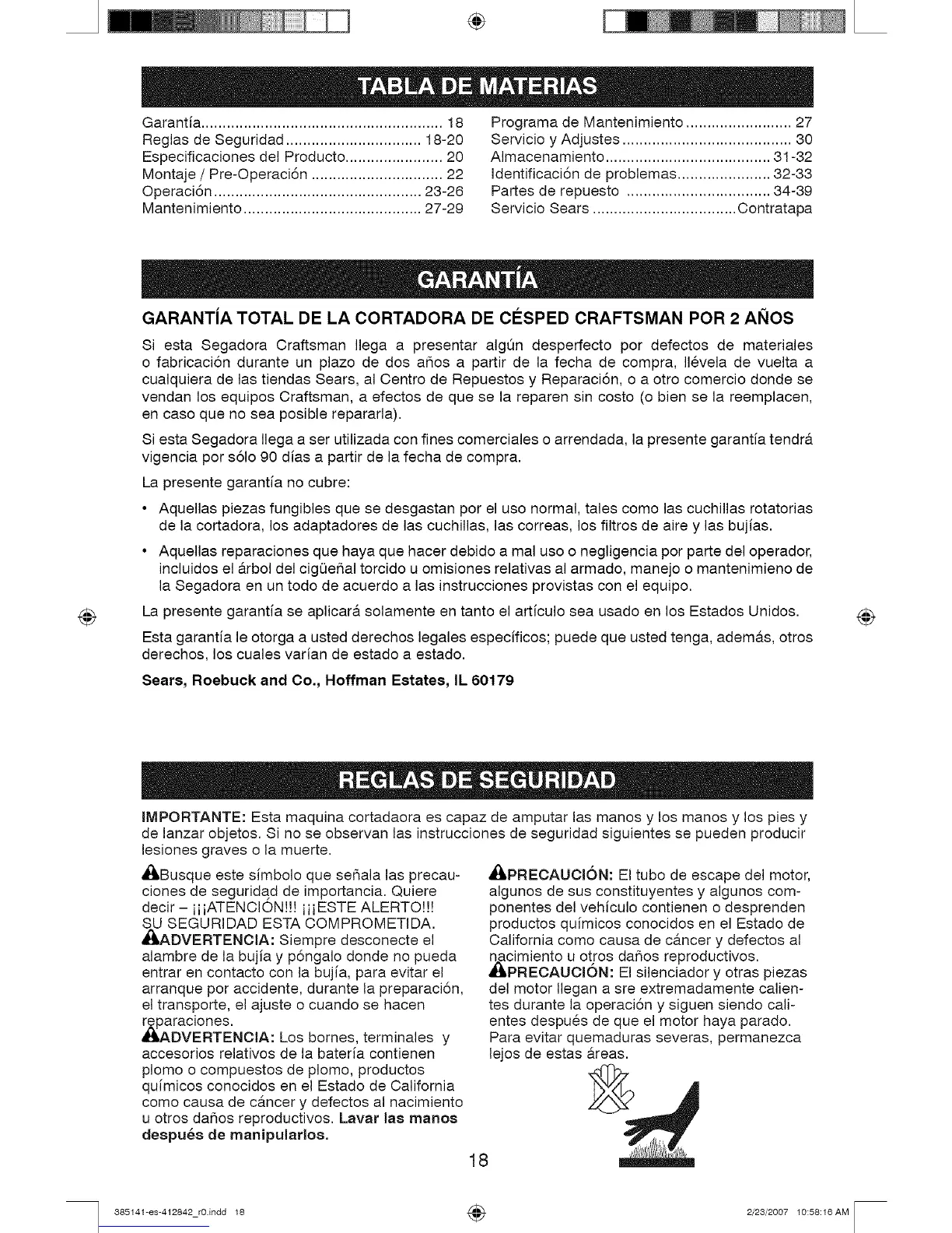 Siesta Segadora Craftsman Ilega a presentar algQn desperfecto por defectos de materiales