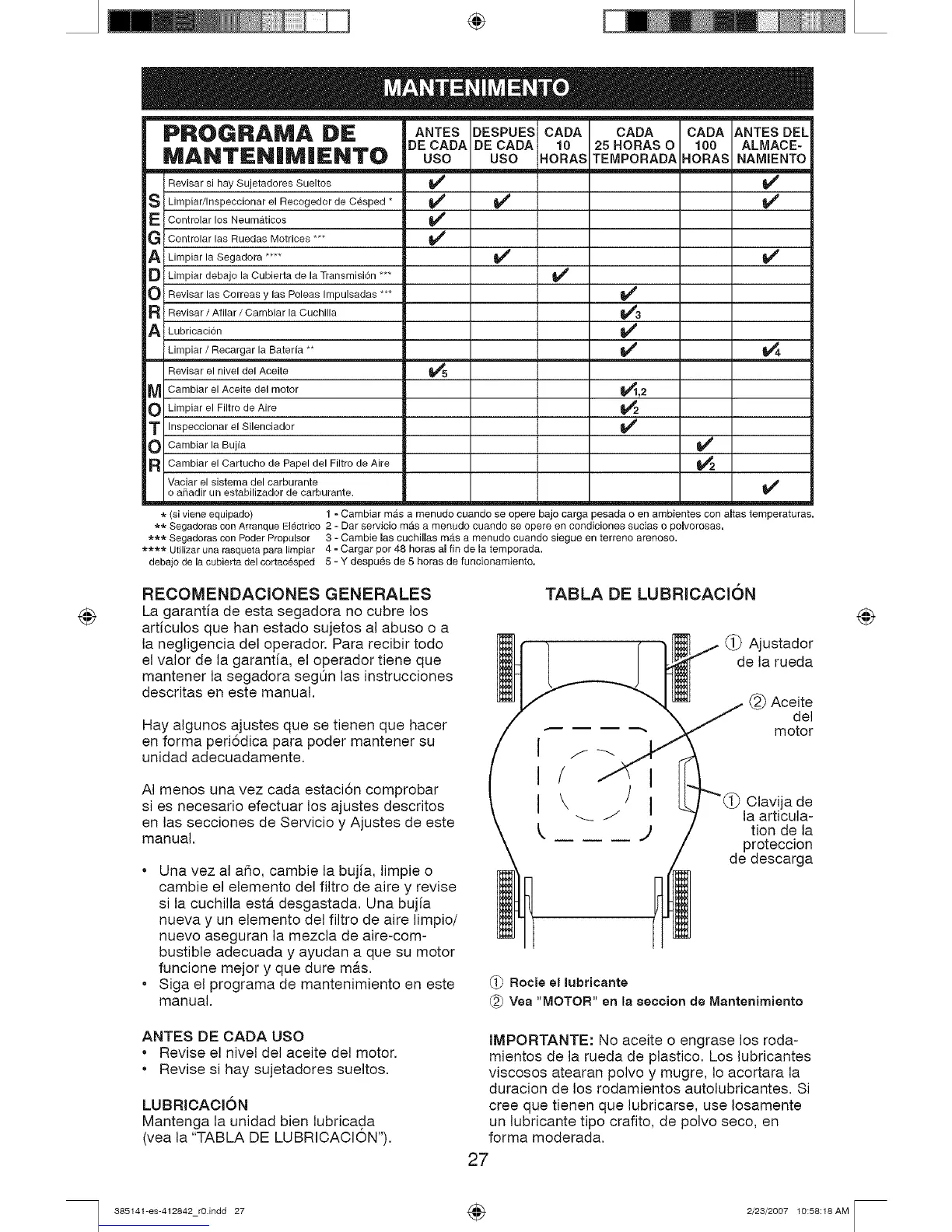 *_, Segadoras con Arranque El_ctrico 2 - Dar servicio mas a menudo cuando se opere en condiciones sucias o polvorosas.