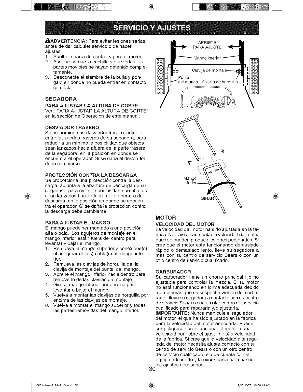 Vea "PARA AJUSTAR LA ALTURA DE CORTE"