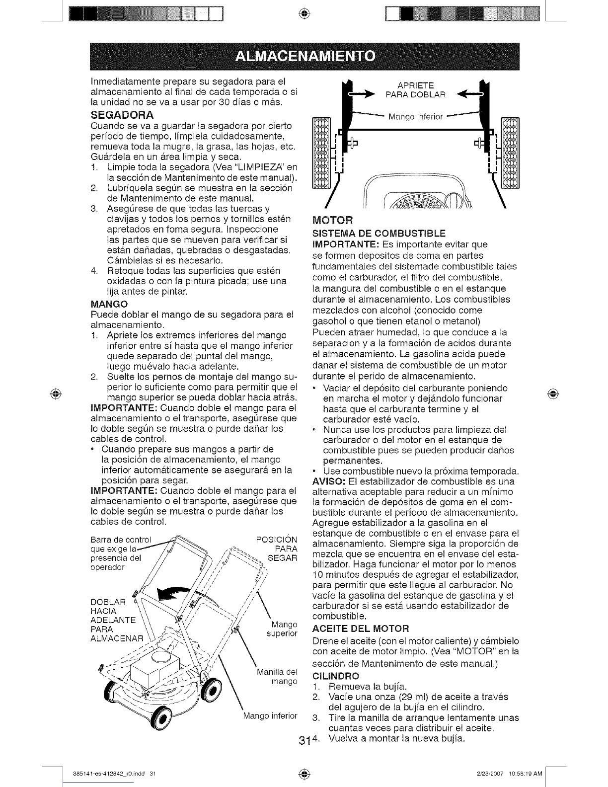 1. Limpie toda la segadora (Vea "LIMPIEZ,_' en