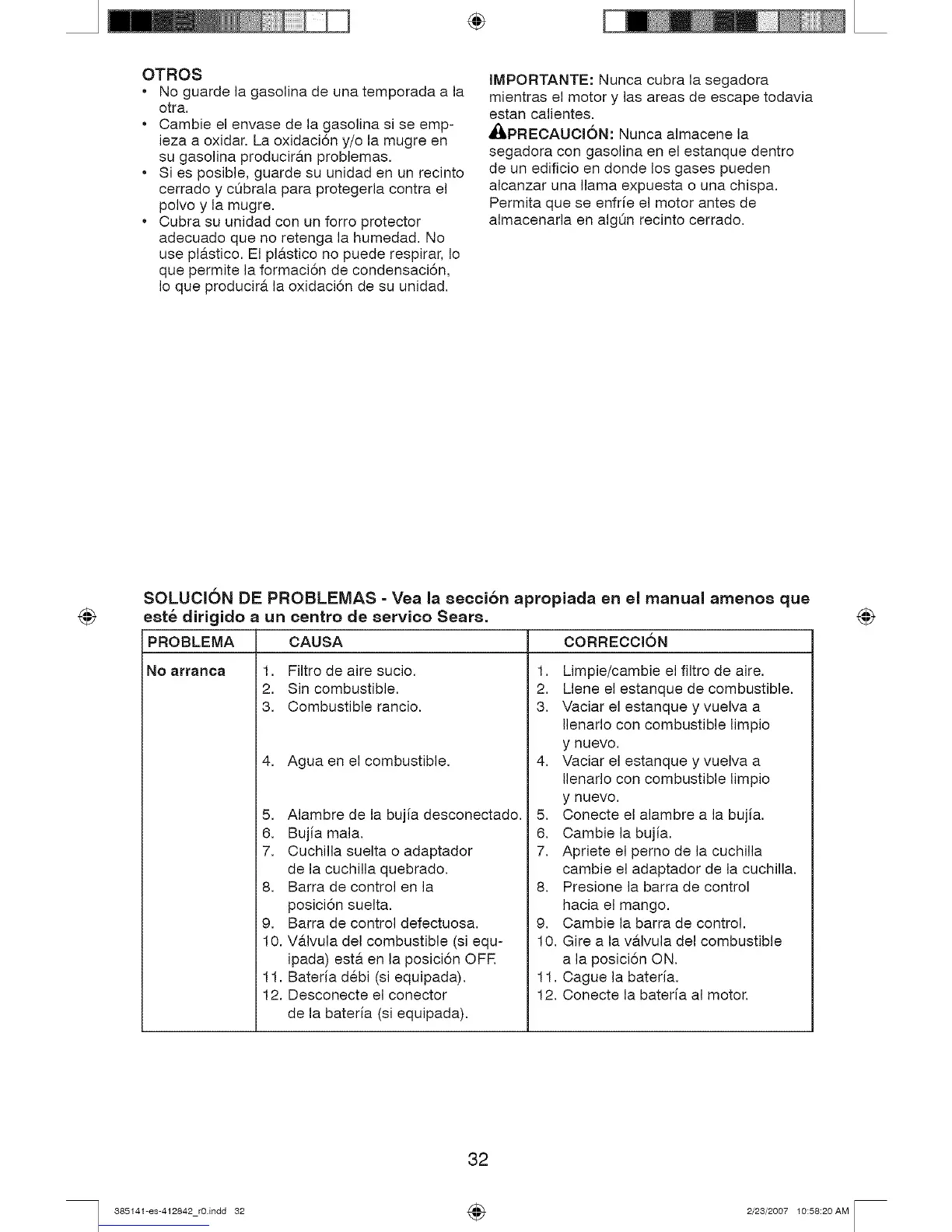 SOLUCJON DE PROBLEMAS - Yea la 8eccion apropJada en el manual amenoa que