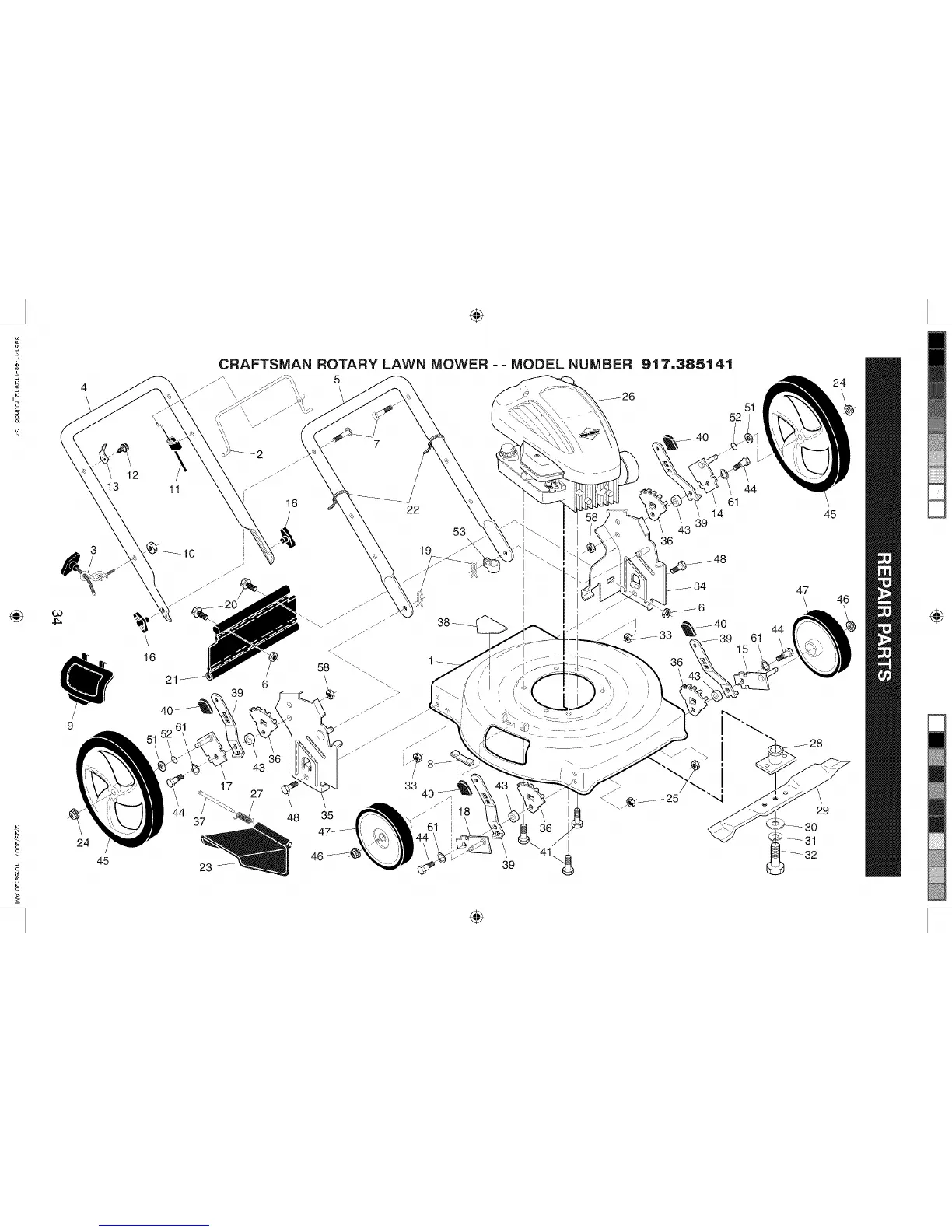 CRAFTSMAN ROTARY LAWN MOWER - - MODEL NUMBER 917.385141