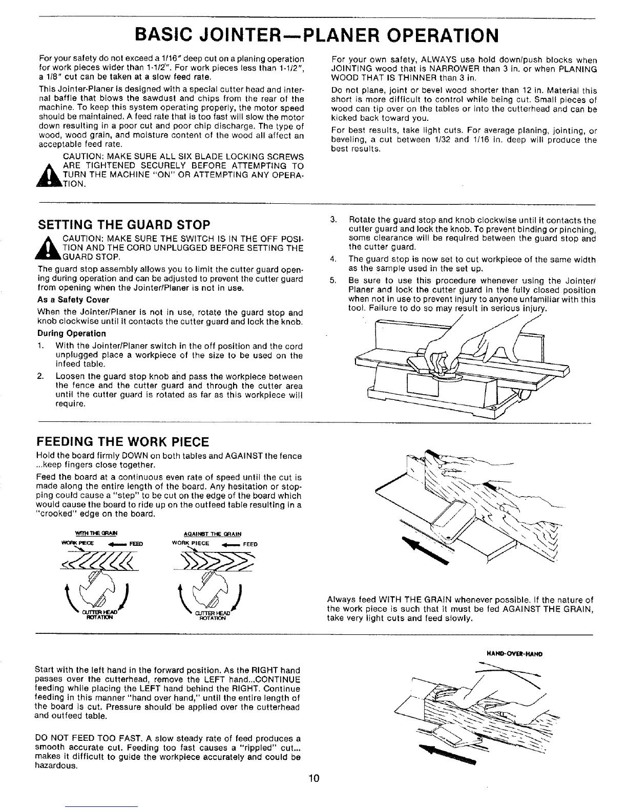 For best results, take light cuts. For average planing, jointing, or