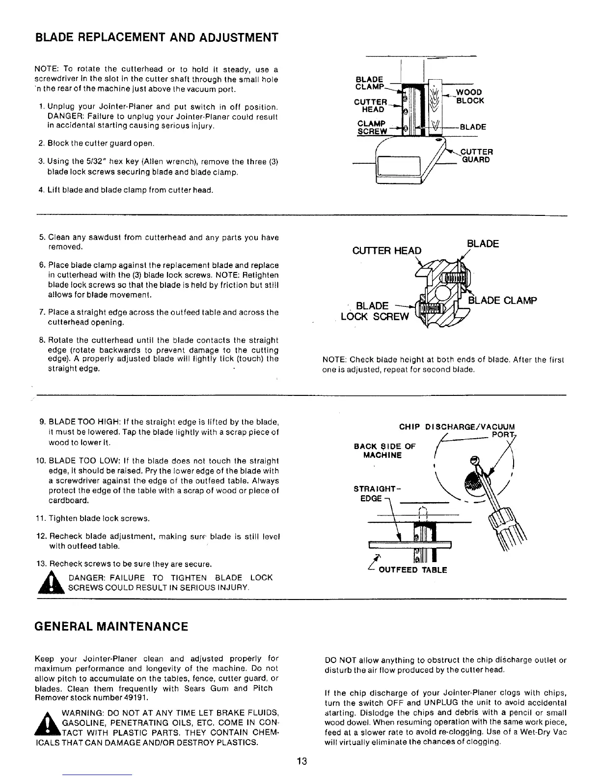 BLADE REPLACEMENT AND ADJUSTMENT